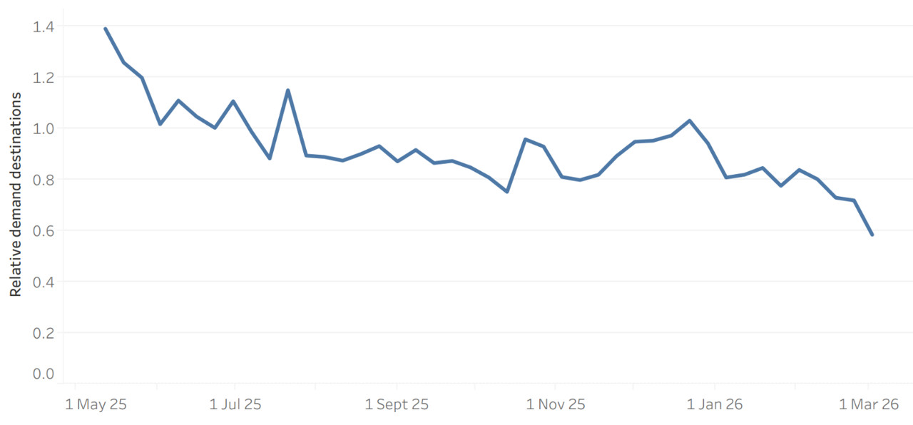 Student searches from Iran meanwhile, have been heavily impacted by the government’s internet shutdowns. Following strikes in late February 2026, internet connectivity there fell to around 1–4% of normal levels. Options for Iranian students to study globally have been restricted in some key destinations, however the interest in pursuing a foreign education is still high.